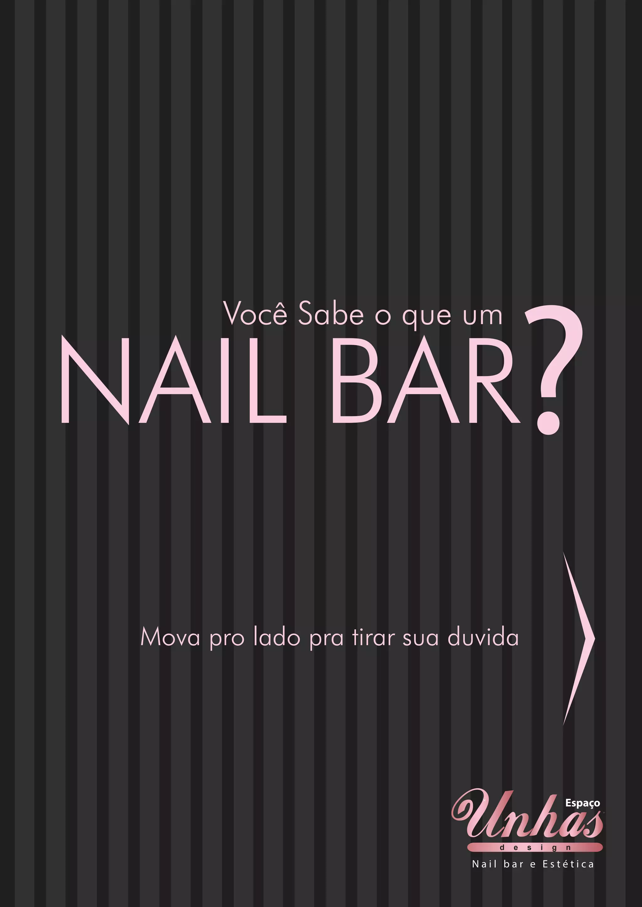 O documento descreve o que é um nail bar, um espaço que oferece serviços de estética para as mãos e os pés, como manicure e pedicure, além de disponibilizar drinks e um ambiente descontraído para as clientes conversarem. Os nail bars contam com equipamentos modernos e profissionais qualificados para realizar as manicures e também oferecem outros serviços como maquiagem, escalda-pés e massagens. O texto convida as leitoras a visitarem o Espaço Unhas Design, que reúne todos esses serviços.