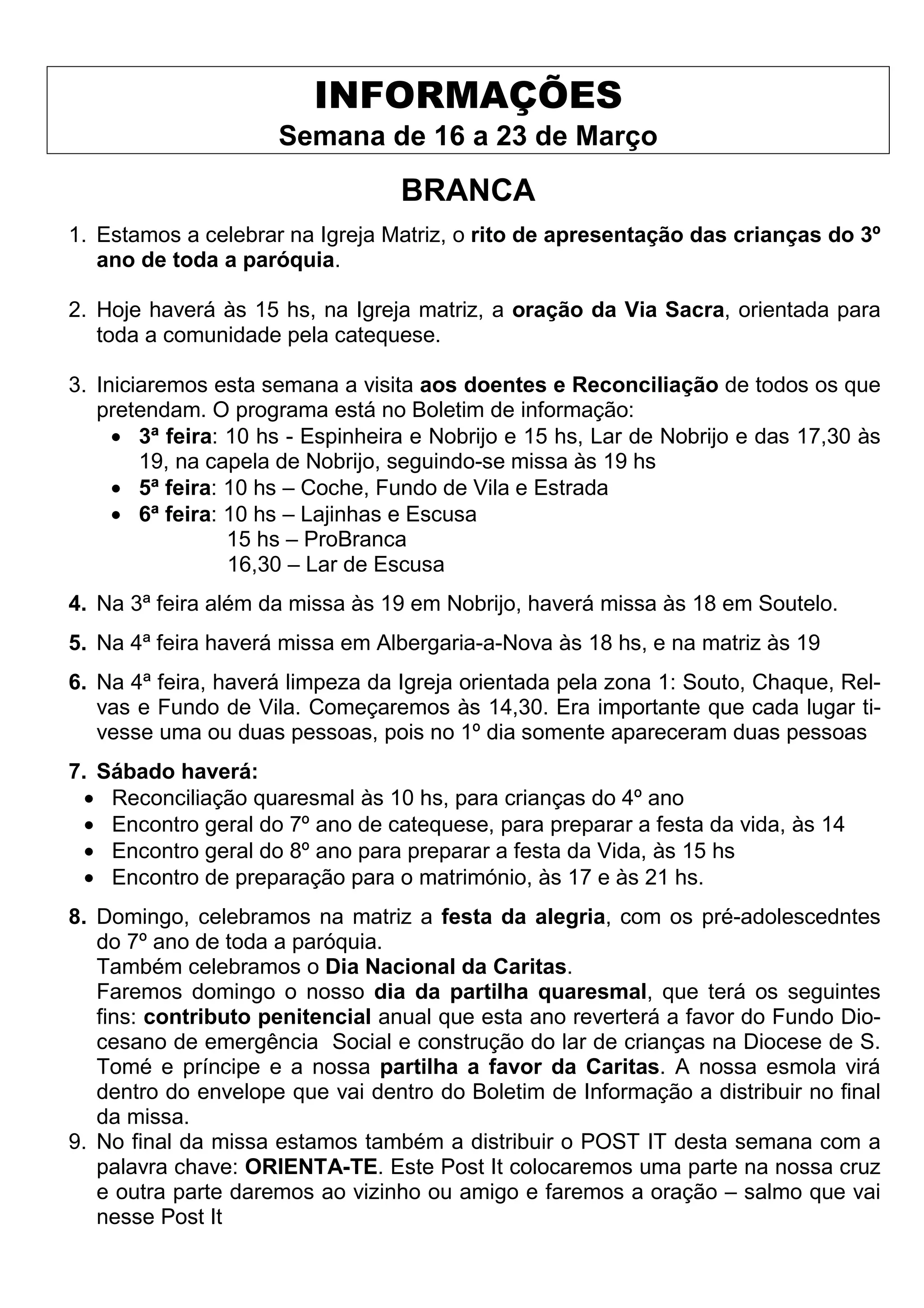 2. Haverá oração da Via Sacra orientada para a comunidade na Igreja Matriz às 15h.