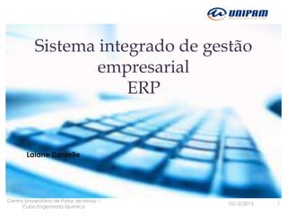 O documento aborda o sistema integrado de gestão empresarial (ERP), destacando sua definição como uma plataforma que integra diversos departamentos de uma empresa e automatiza processos. Discute as vantagens, como a melhoria na confiabilidade dos dados e a redução de retrabalho, bem como desvantagens, incluindo altos custos e dependência de fornecedores. Para a implementação bem-sucedida do ERP, são apresentados fatores críticos, como o envolvimento dos usuários e o apoio da direção.