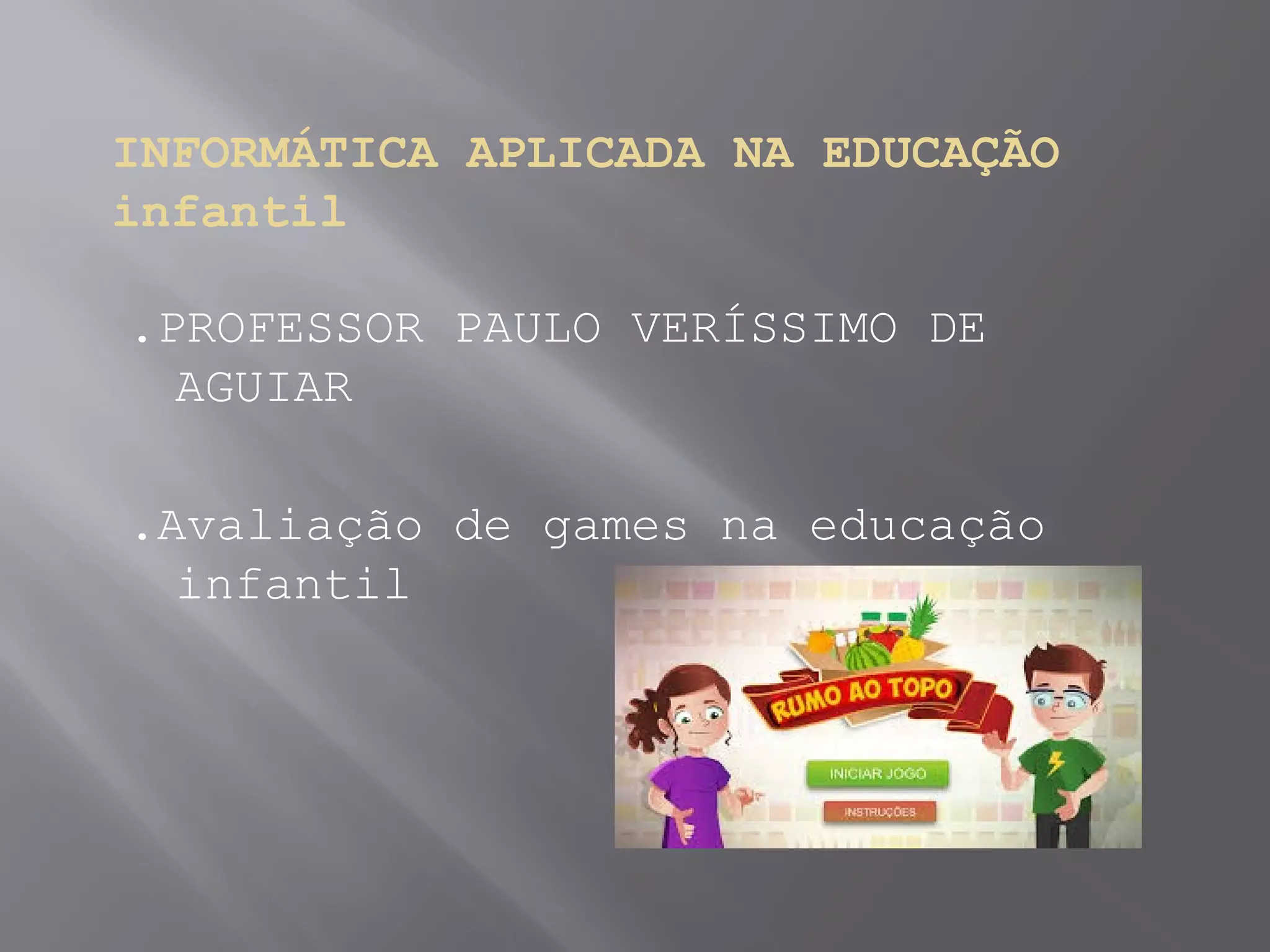 O documento descreve um jogo educativo sobre frutas para crianças da educação infantil. O jogo ensina sobre os benefícios das frutas para a saúde ao mesmo tempo em que estimula a concentração e pensamento lógico das crianças. O documento analisa técnica, pedagogica e conteudisticamente o jogo, concluindo que ele é adequado para a idade, interativo e sem preconceitos.