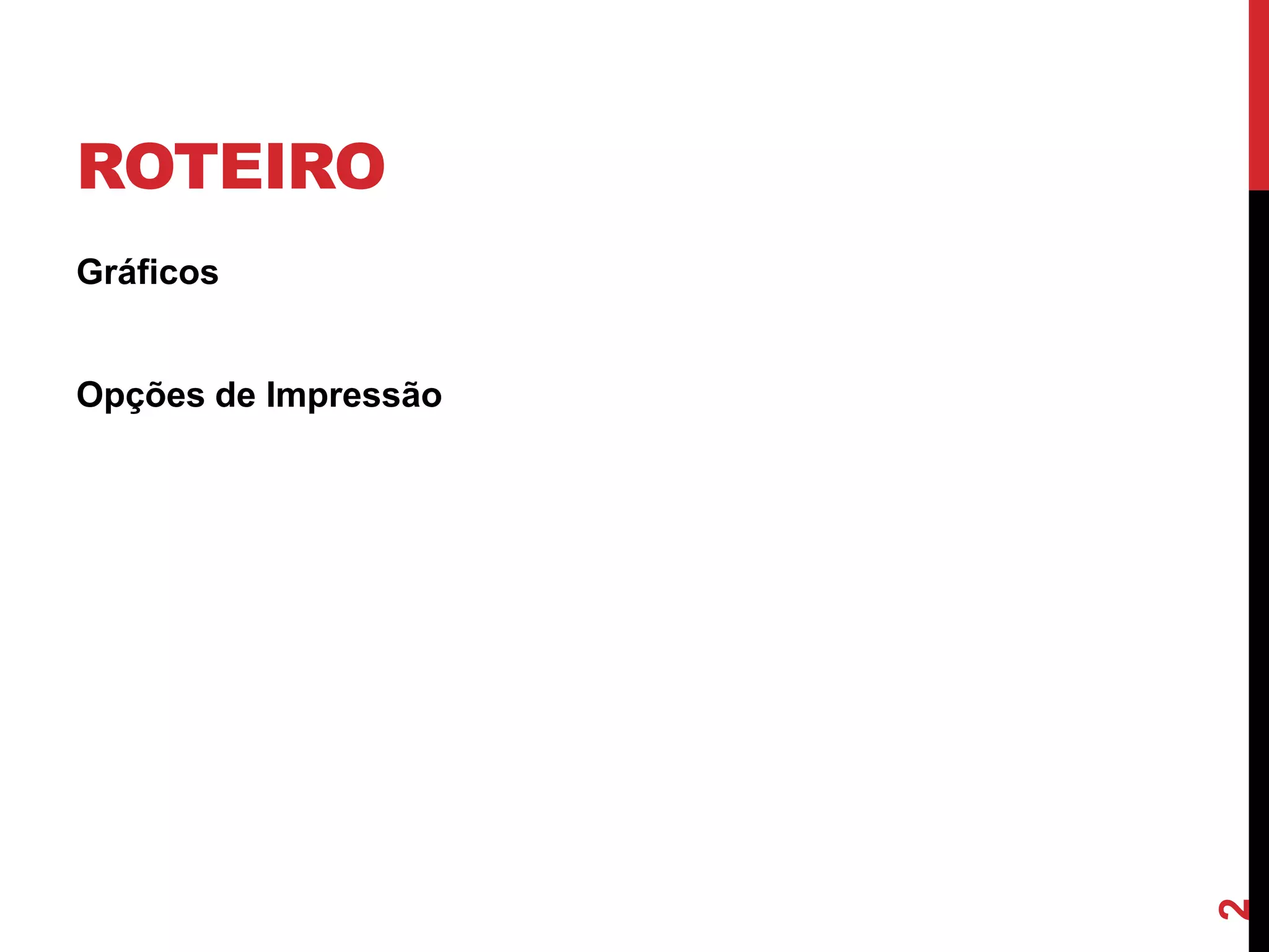 O documento discute a criação de gráficos e configuração de opções de impressão no Microsoft Excel. Ele fornece instruções passo a passo sobre como usar uma planilha para gerar um gráfico e personalizar suas opções de impressão.