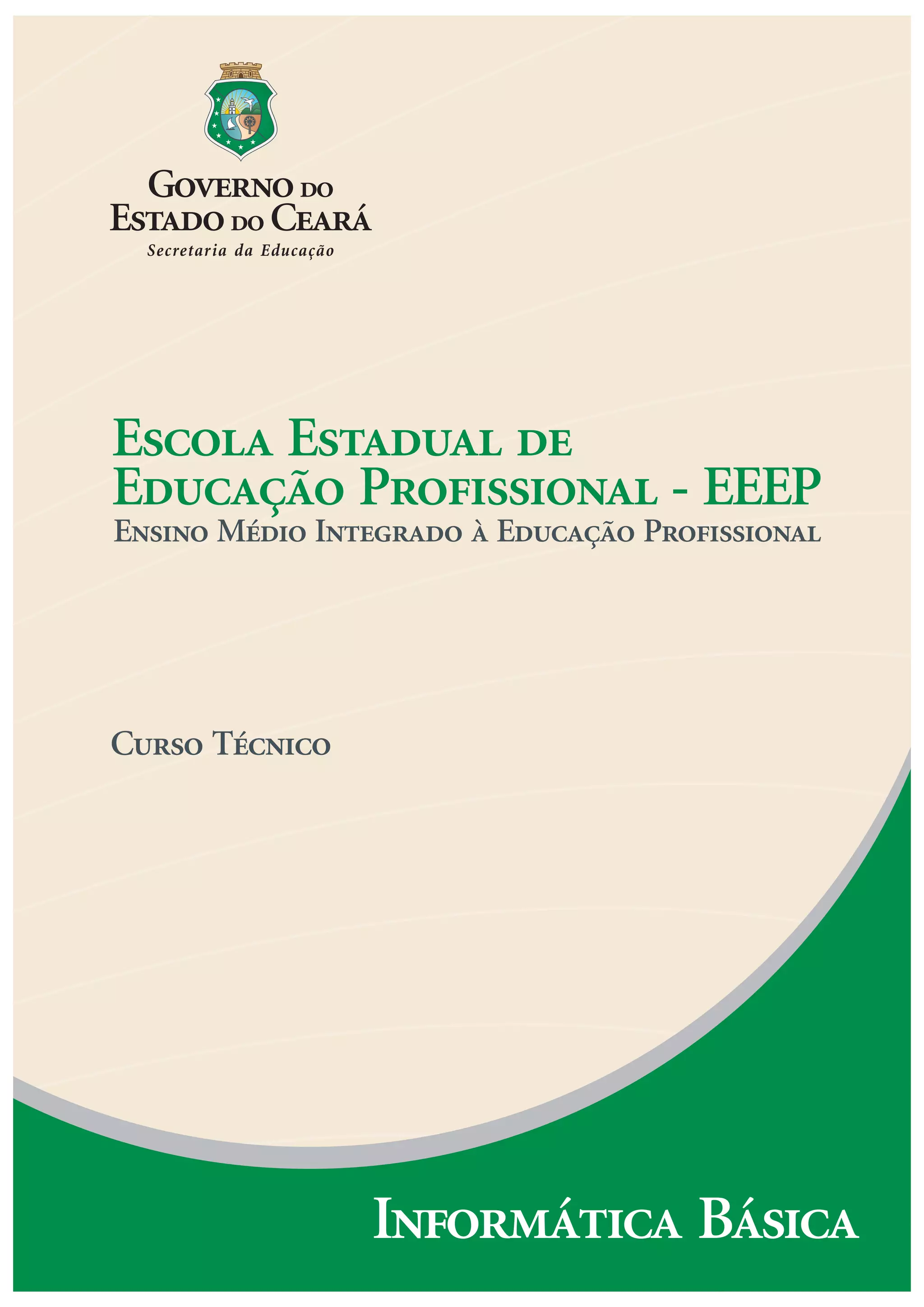 1. O documento apresenta um curso técnico de informática básica oferecido por uma escola estadual de educação profissional no Ceará. 2. O curso aborda tópicos como história da informática, hardware, sistemas operacionais, redes de computadores, pacotes de escritório e internet. 3. O objetivo é capacitar os estudantes com conhecimentos básicos de informática para ingresso no mercado de trabalho.
