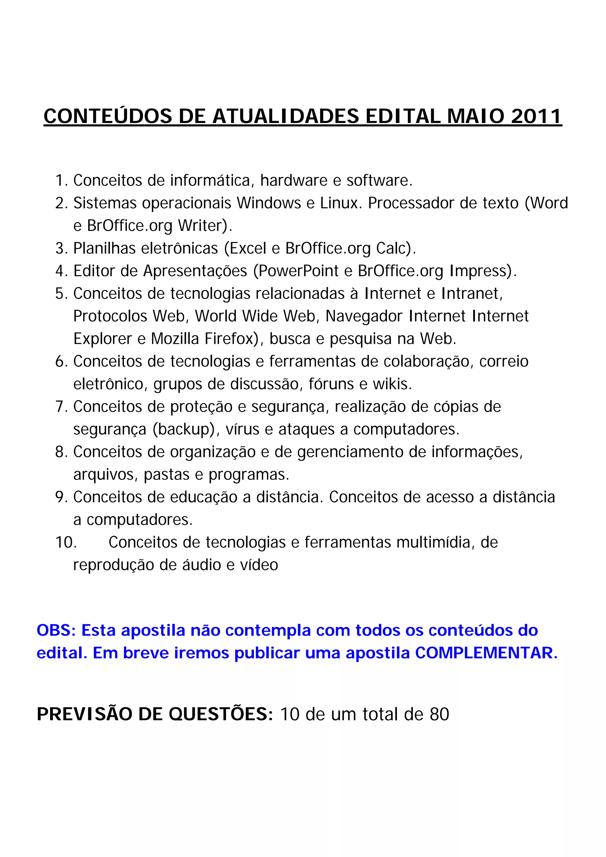 3) Tem como objetivo preparar os alunos para concursos públicos, abordando tópicos comuns em provas de informática.