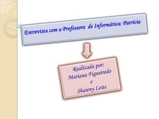 Este documento resume duas entrevistas realizadas com professoras sobre o uso da informática na educação. A professora Fernanda da Escola Studio da Criança usa sites e softwares lúdicos para ensinar crianças pequenas. A professora Patrícia do Colégio Marista de São José usa a informática para desenvolver o pensamento crítico dos alunos de forma interativa. Ambas acreditam que a informática motiva os alunos e contribui para a construção do conhecimento.