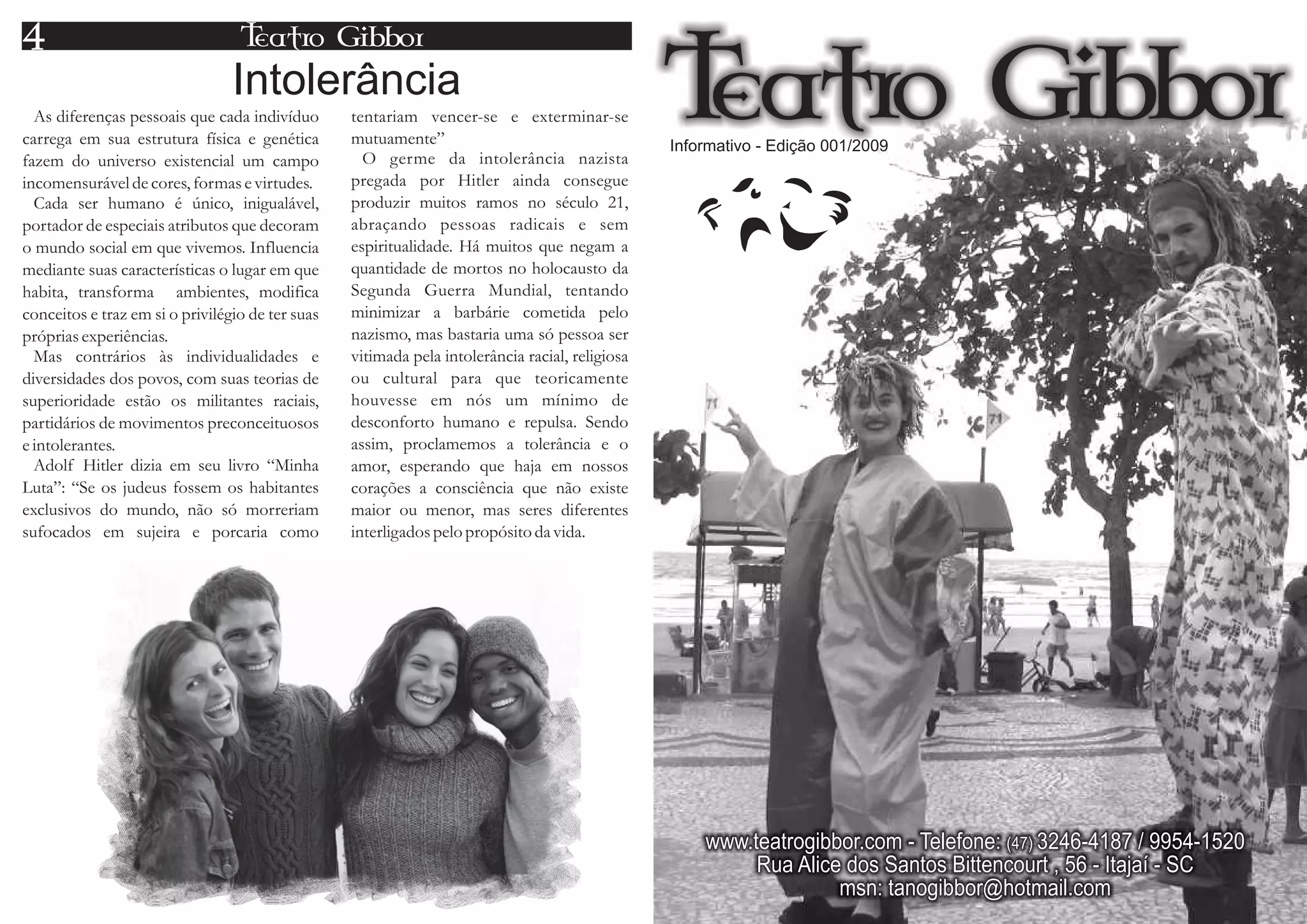 O documento discute a importância da tolerância e do amor em contraposição à intolerância. Afirma que cada pessoa é única e influencia o mundo de forma diferente, mas que há quem pregue a superioridade de alguns sobre outros. Conclui pedindo que proclamemos a tolerância e o amor.