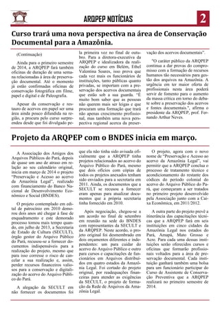 Curso de Assistente de Conservação Preventiva formará mão de obra especializada na região. Curso trará uma nova perspectiva na área de Conservação Documental para a Amazônia. Projeto da ARQPEP com o BNDES inicia em março.