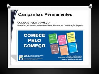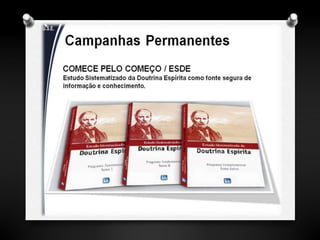 Este documento descreve as atividades educacionais e assistenciais oferecidas pelo Departamento de Educação Espírita Infanto Juvenil, incluindo cursos, palestras e grupos de estudo para diferentes faixas etárias, assim como o trabalho do Departamento de Assistência às Famílias para famílias carentes.
