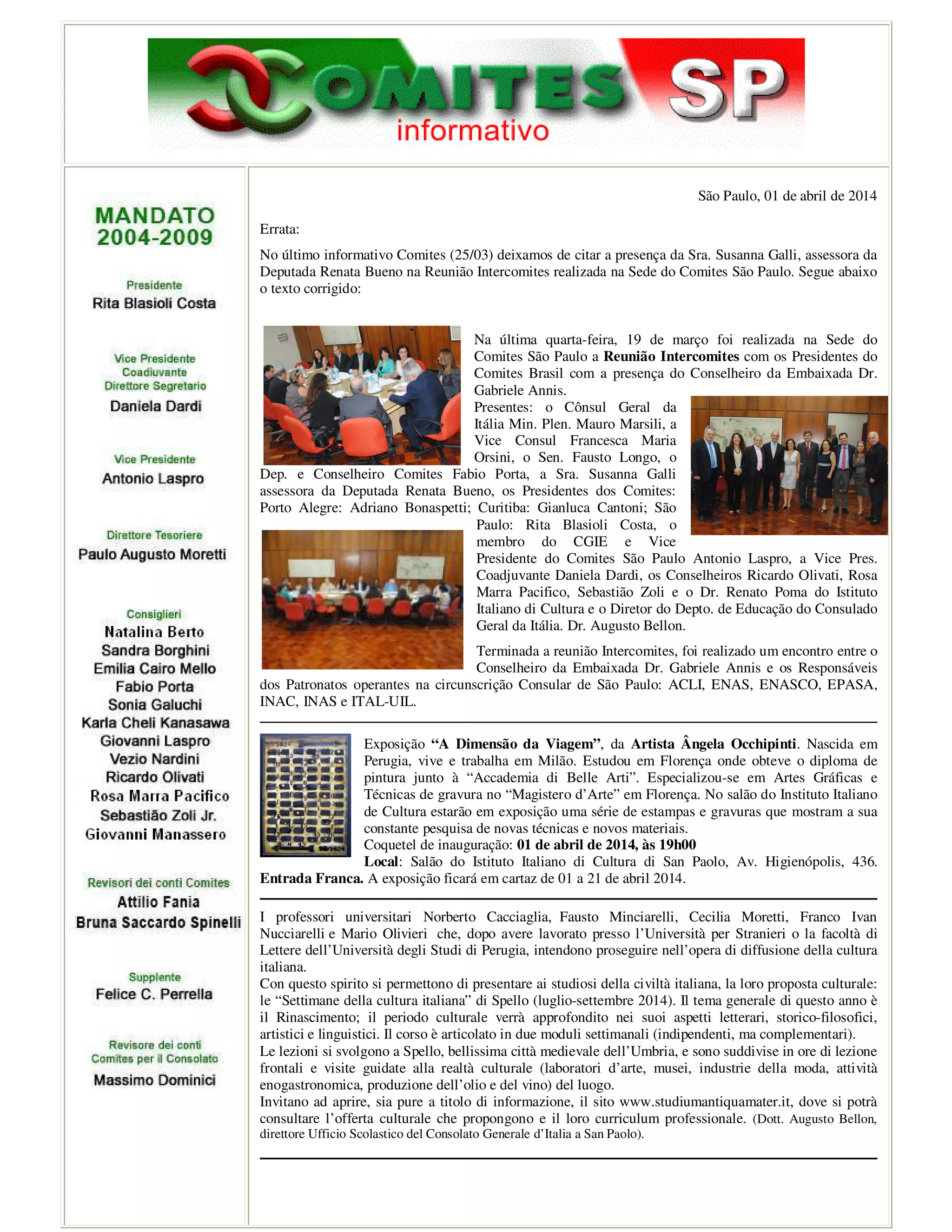1) Foi realizada uma reunião intercomites com representantes de diversas instituições italianas e brasileiras para discutir assuntos de interesse da comunidade italiana.