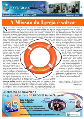 O boletim informativo da Igreja Adventista da Promessa de Cianorte, PR contém: