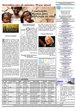 2) A programação de cultos, escola bíblica e outras atividades para o mês de setembro
