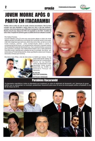 2) Um caso destacado é o da morte de uma jovem após o parto no hospital municipal, que pode estar relacionado aos problemas na saúde do município.