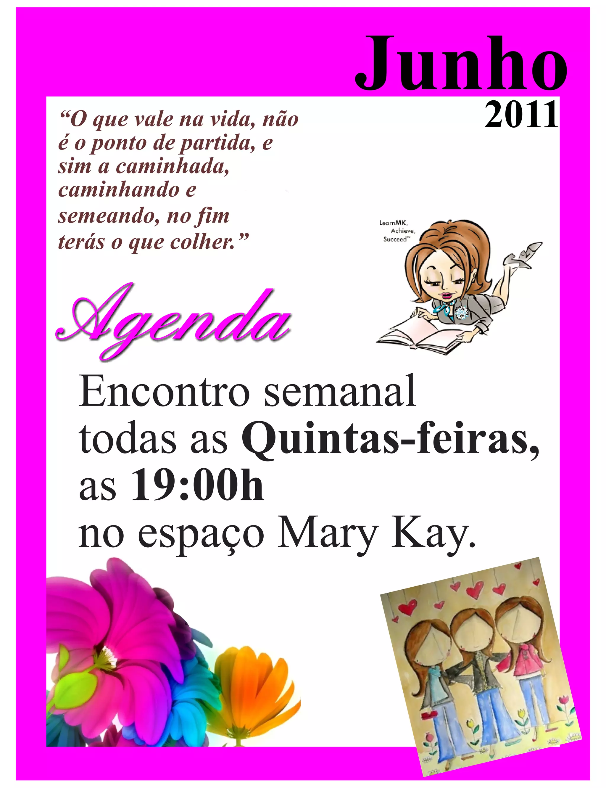 Este documento é a agenda de uma reunião de consultoras de vendas da Mary Kay. Contém informações sobre aniversariantes, novas consultoras, reconhecimentos, tops de vendas, metas e desafios para os próximos meses.