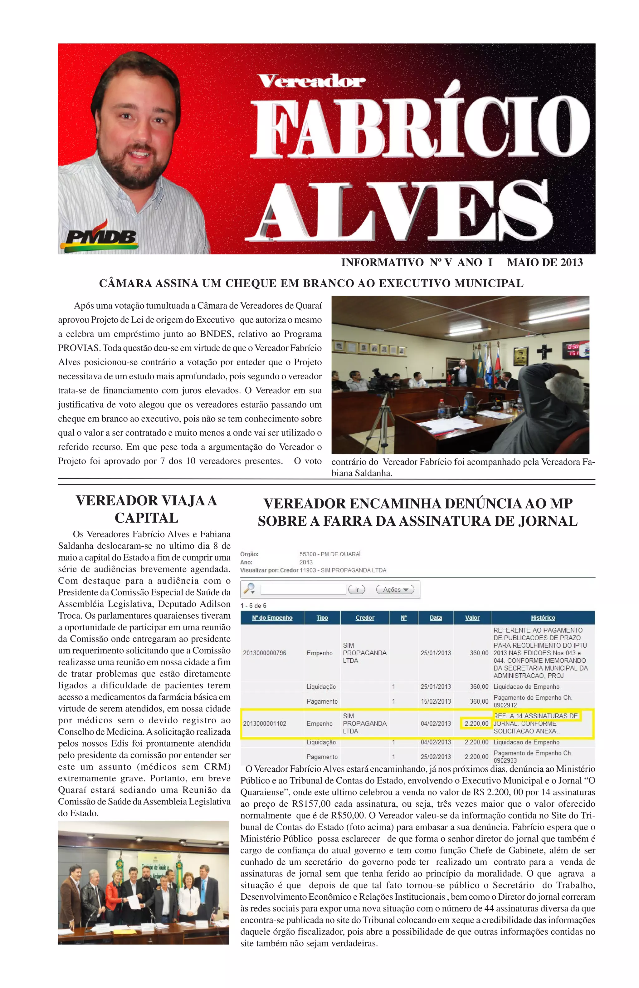 Após votação tumultuada, a Câmara de Vereadores de Quaraí aprovou um projeto de lei que autoriza o Executivo Municipal a realizar um empréstimo junto ao BNDES, sem especificar o valor ou destinação dos recursos. Dois vereadores votaram contra, alegando que a medida passa um "cheque em branco" ao Executivo.