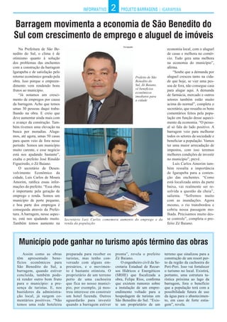 A barragem de Igarapeba em construção em São Benedito do Sul é a segunda maior em capacidade de armazenamento na Zona da Mata de Pernambuco. Quando concluída em meados de 2014, suportará até 68 milhões de metros cúbicos de água. As chuvas atrapalharam a obra, mas o governo se esforçará para manter o prazo de entrega e a barragem beneficiará a região ao controlar enchentes e promover o desenvolvimento econômico local.