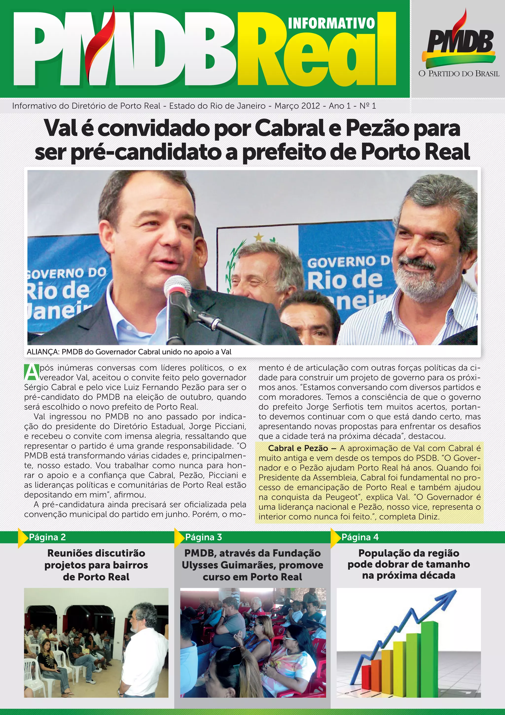 1) O ex-vereador Val aceitou o convite do governador Cabral e do vice Pezão para ser o pré-candidato do PMDB à prefeitura de Porto Real nas eleições de outubro.