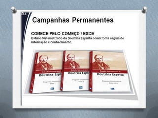 Este documento fornece informações sobre as atividades educacionais e assistenciais de um departamento espírita, incluindo palestras públicas sobre temas espíritas, aplicação de passes magnéticos, salas de estudo sobre livros espíritas, grupos de artesanato, departamento de orientação e assistência às famílias, doação de livros, e como se tornar um voluntário.
