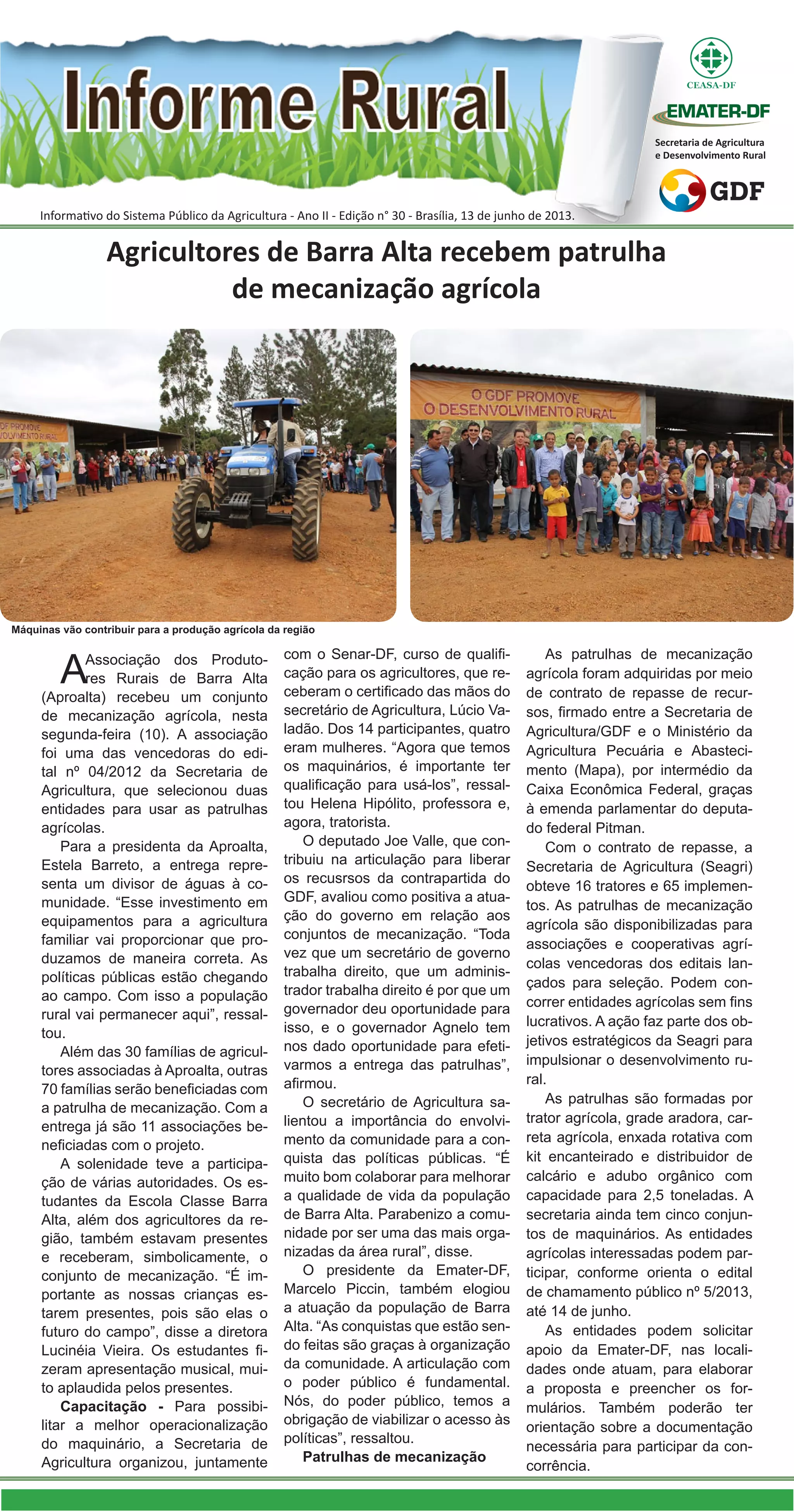 Informativo do SistemaPúblico da Agricultura - Ano II - Edição n° 30 - Brasília, 13 de junho de 2013.