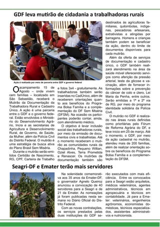 2) O GDF realiza mutirões para emitir documentos e cadastrar trabalhadoras rurais no CadÚnico, oferecendo também atendimento médico.