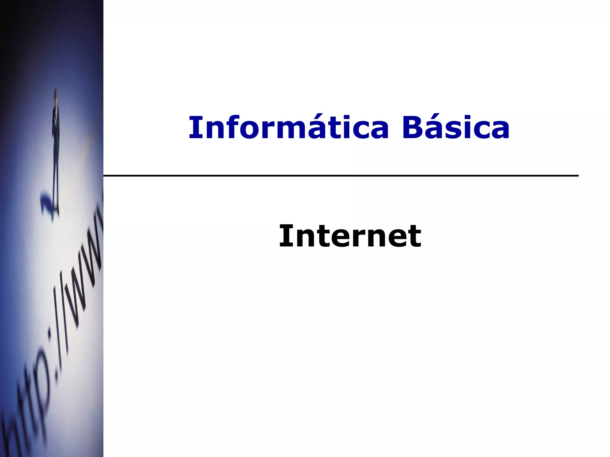 A Internet é a maior rede de computadores interligados do mundo, permitindo a comunicação e troca de informações entre usuários. Ela surgiu da necessidade de interligar centros de computação e hoje é essencial para comunicação, pesquisa, comércio e acesso ao conhecimento. Serviços como e-mail, World Wide Web, buscadores e download tornam a Internet uma ferramenta revolucionária na vida moderna.