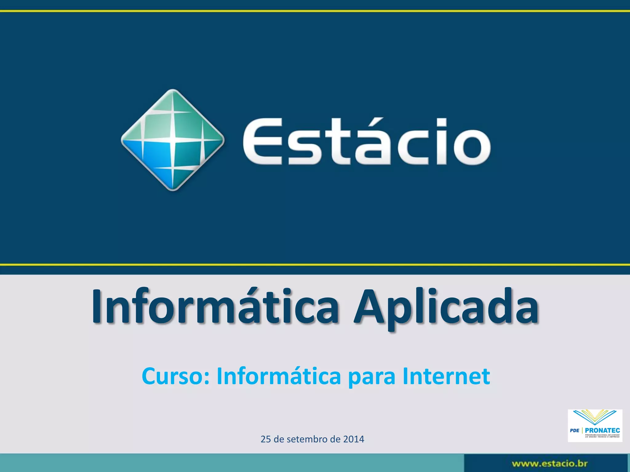 O documento apresenta um curso de Informática para Internet que abrange desenvolvimento de programas, manutenção de sites e portais, além de competências e habilidades em diversos aplicativos e sistemas operacionais. Também oferece uma visão histórica da computação, detalhando suas gerações, desde o uso de válvulas até supercomputadores e inteligência artificial. Referências acadêmicas e uma reflexão sobre a importância da informática no cotidiano moderno são incluídas.