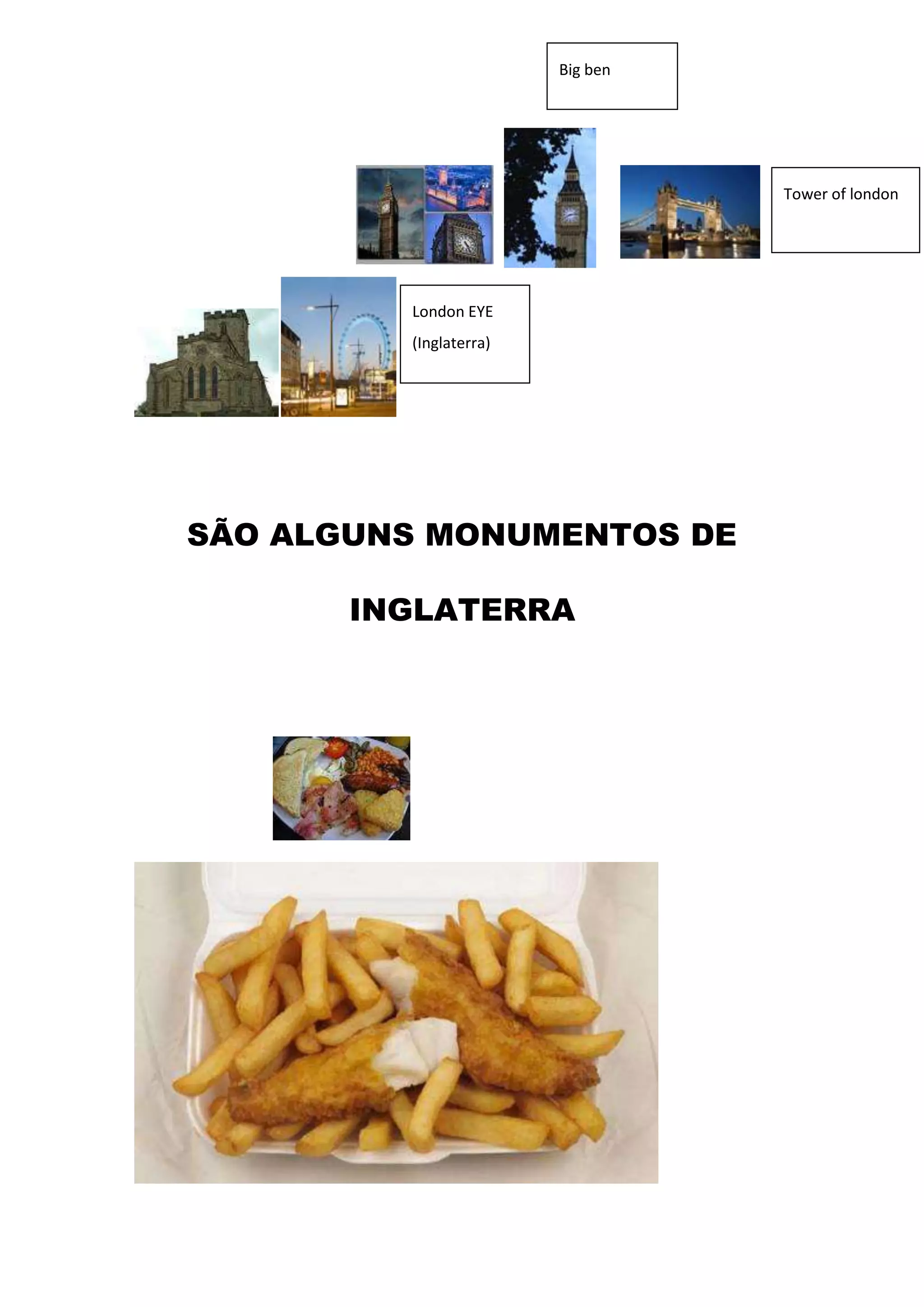A Inglaterra é uma monarquia parlamentarista com libra esterlina como moeda. Seu clima é temperado com chuvas frequentes e invernos amenos. Pontos turísticos incluem a London Eye, Torre de Londres e Big Ben, enquanto a culinária tradicional consiste de peixe e batatas fritas.