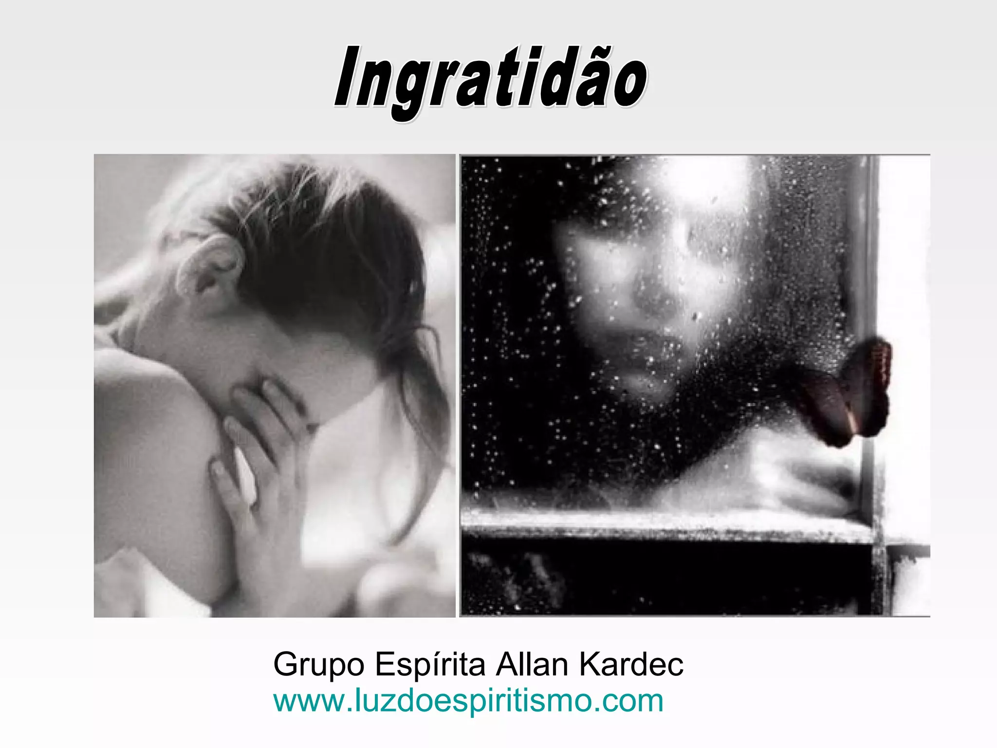 O documento discute a gratidão e a ingratidão do ponto de vista espírita. A gratidão expressa-se através de emanações energéticas de alta frequência, enquanto a ingratidão se expressa por emanações de baixa frequência. A gratidão traz benefícios como contato com esferas espirituais elevadas, enquanto a ingratidão pode atrair entidades sofredoras e afastar dos espíritos protetores.
