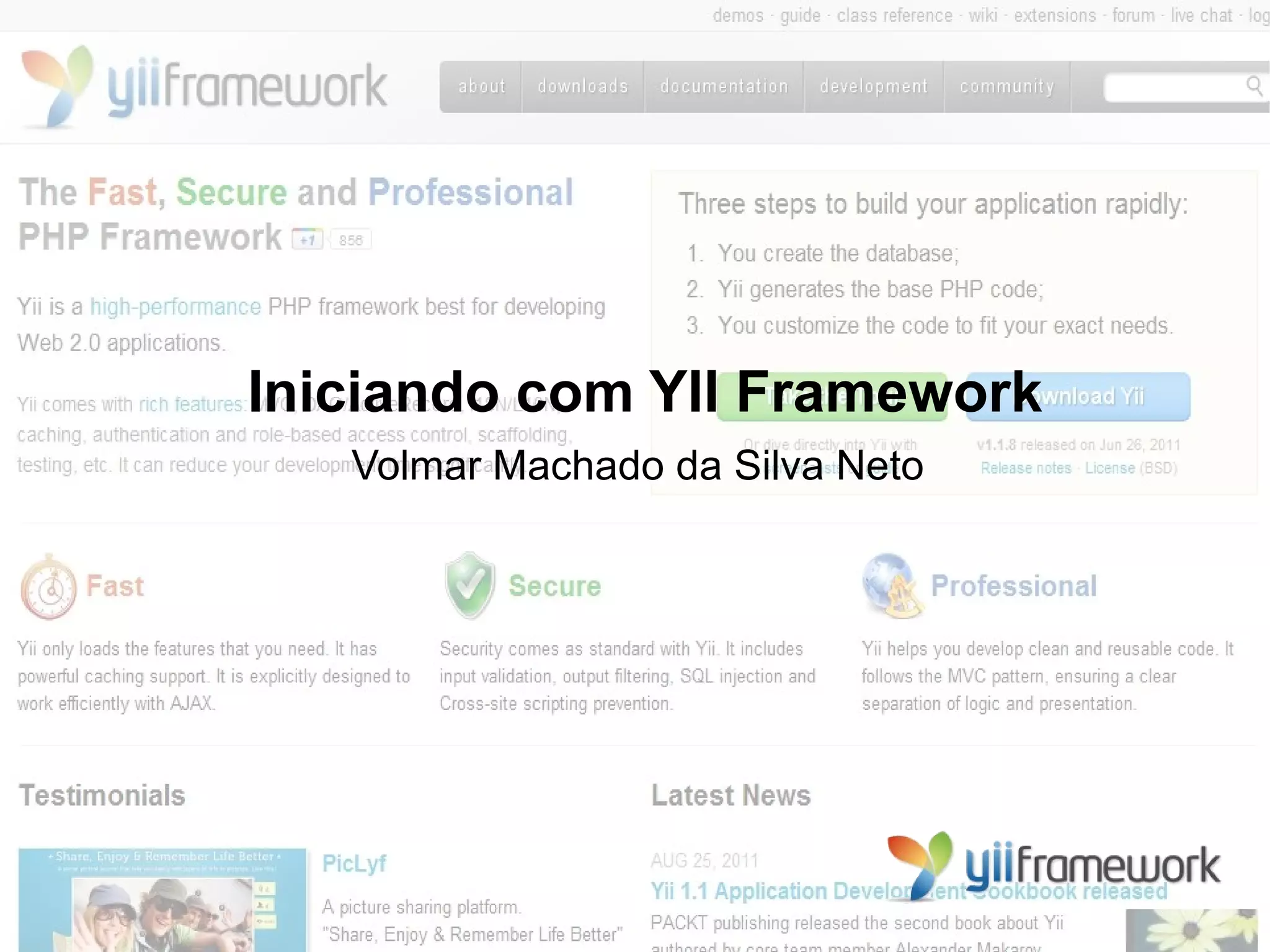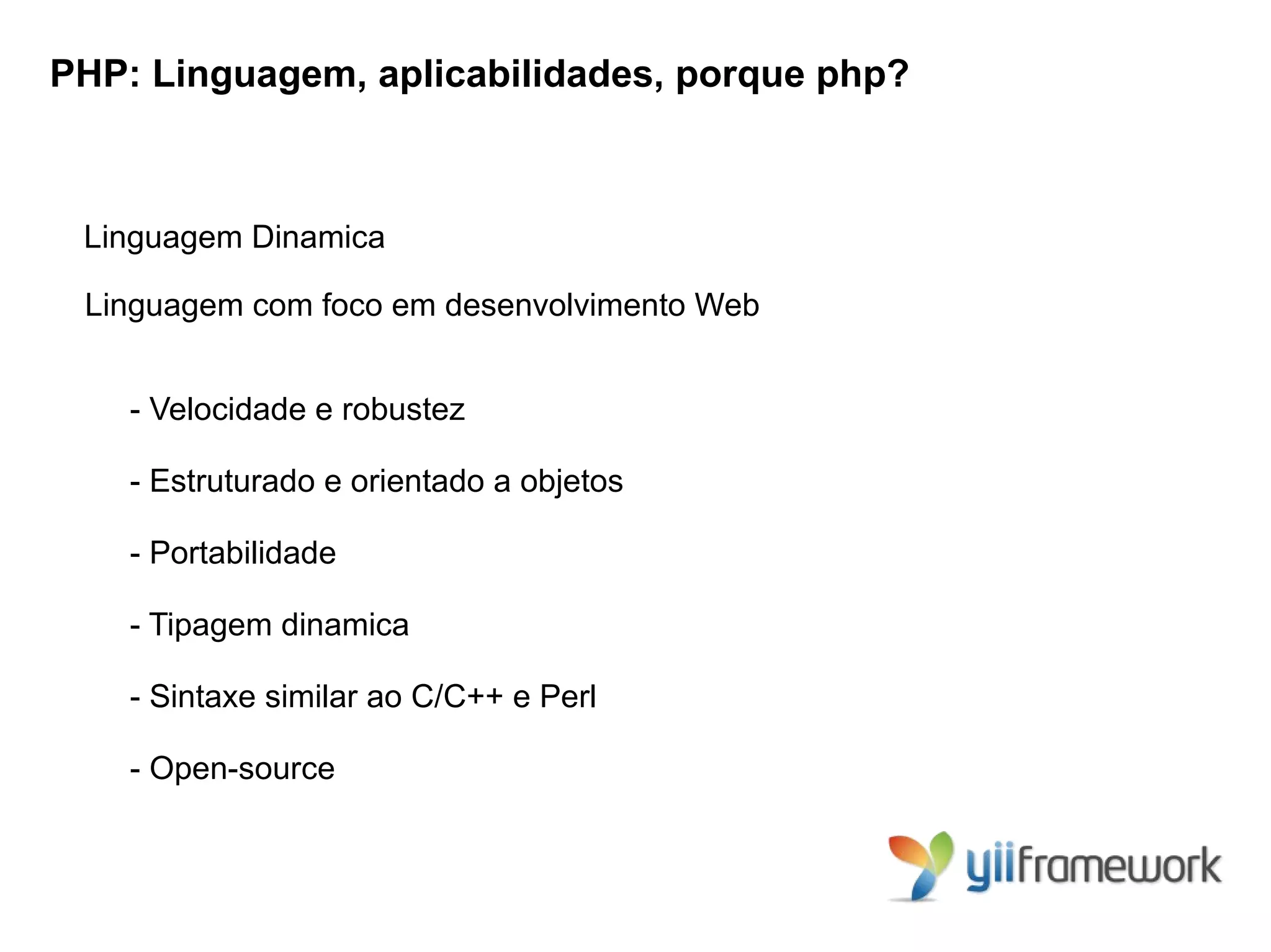 O documento descreve o framework Yii para desenvolvimento web em PHP. O Yii é um framework MVC de alto desempenho que utiliza componentes para acelerar o desenvolvimento de aplicações web complexas. O Yii implementa padrões como MVC e tem estrutura de diretórios e arquivos bem definida para models, views, controllers e configurações.