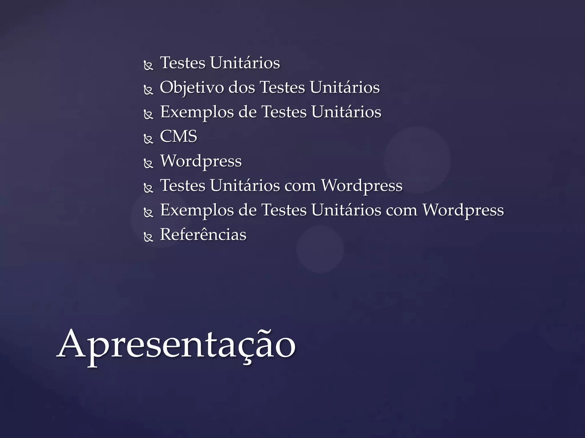 Os testes unitários validam entradas e saídas de unidades individuais de código para prevenir erros. O documento descreve testes unitários com WordPress, incluindo instalação do plugin WP-Unit para executar testes no CMS. Exemplos demonstram testes de validação de campos como DDD.