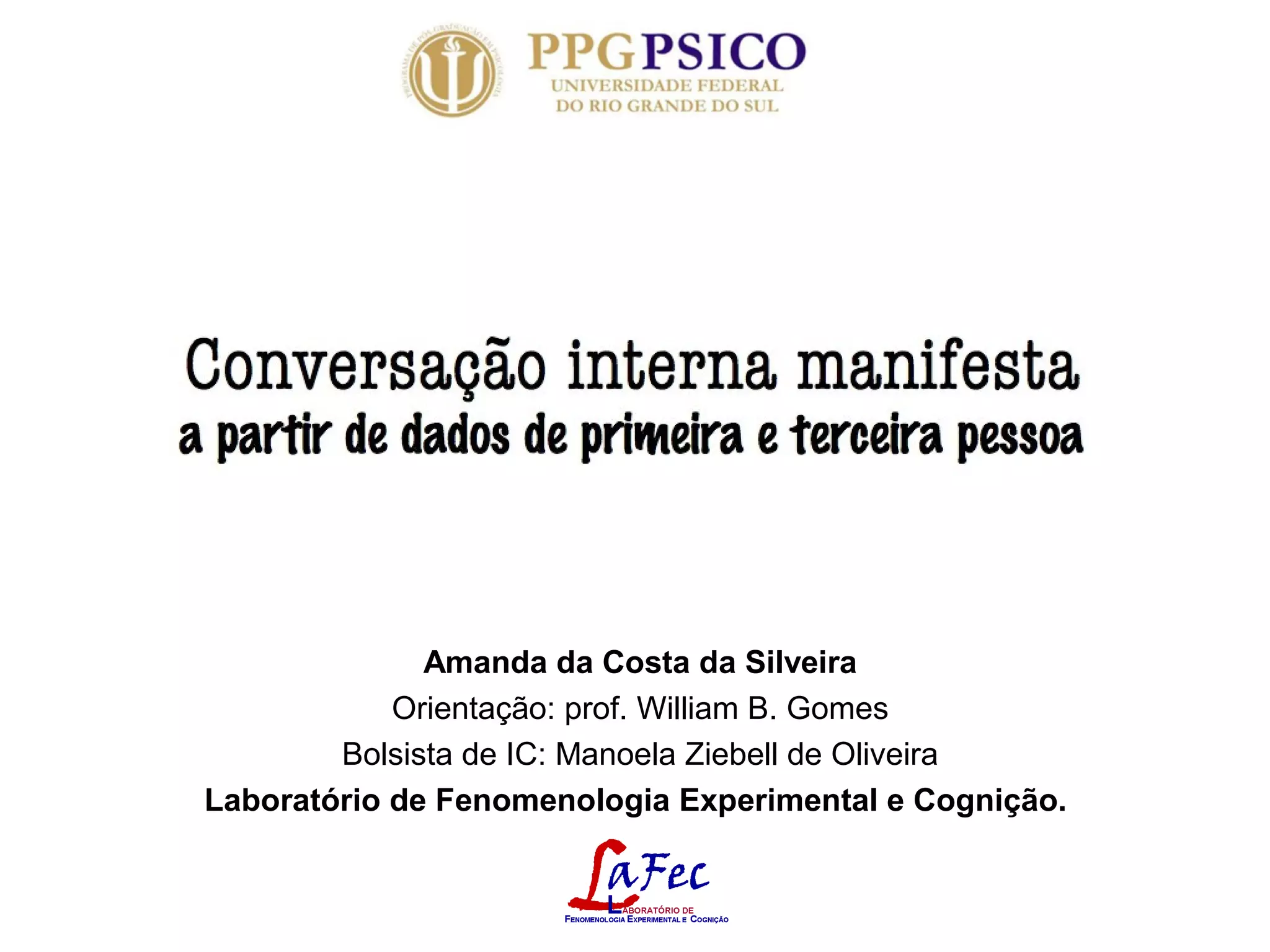 O documento discute a conversação interna como um diálogo reflexivo entre diferentes aspectos do self. Apresenta estudos que investigaram a conversação interna por meio de métodos quantitativos e qualitativos, como a análise de casos extremos. Os resultados mostraram que a qualidade, não a quantidade, de verbalizações está associada à melhor resolução de problemas. A experiência subjetiva revela que a conversação interna serve para organizar pensamentos e lidar com emoções.