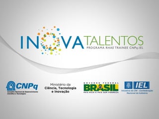 O documento descreve o Programa Inova Talentos, que visa qualificar profissionais para projetos de inovação em empresas. O programa seleciona estudantes e recém-formados para desenvolverem projetos nas empresas, recebendo bolsas entre R$1.500 e R$3.000 em troca de contrapartidas das empresas para implementação dos projetos.