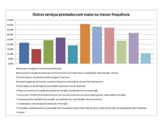 1) O documento descreve um estudo exploratório sobre consultorias de inovação e engenharia no Brasil, mapeando os serviços que elas fornecem.