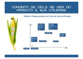 O documento discute o ciclo de vida do produto, incluindo suas principais fases de inovação, lançamento, crescimento, maturidade e declínio. Ele também fornece exemplos de como a inovação ocorre ao longo do processo de design, teste e lançamento de novos produtos no mercado.
