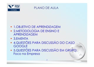 2) Metodologia de ensino baseada em discussão de casos e aplicação prática.