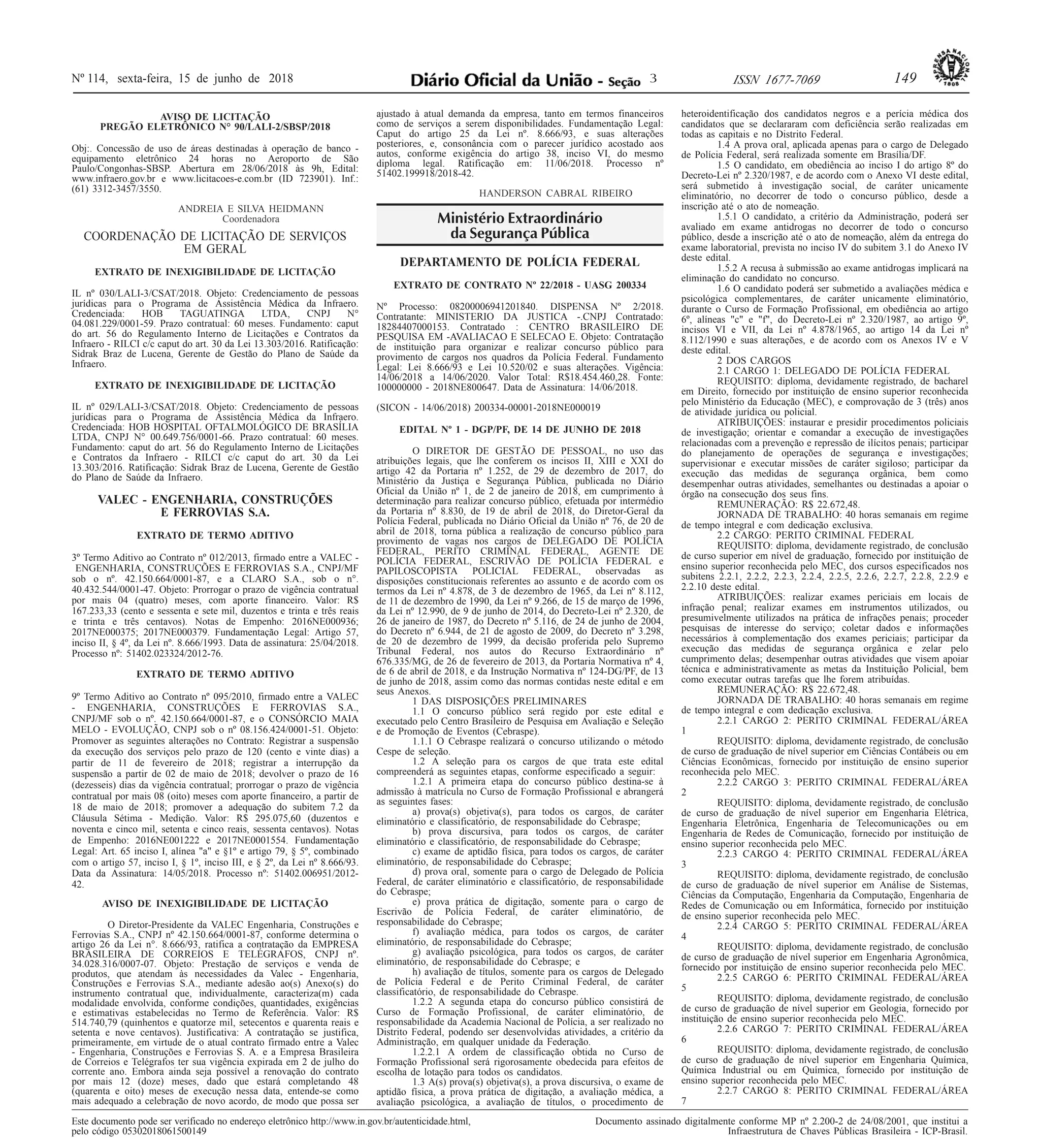 Este documento apresenta um edital de concurso público para preenchimento de vagas na Polícia Federal nos cargos de Delegado, Perito Criminal, Agente, Escrivão e Papiloscopista. O edital descreve as etapas do concurso, que incluem provas objetivas, discursivas, exame de aptidão física, prova oral e avaliações médicas e psicológicas. Também define que o Cebraspe será a banca organizadora responsável pela realização das provas.