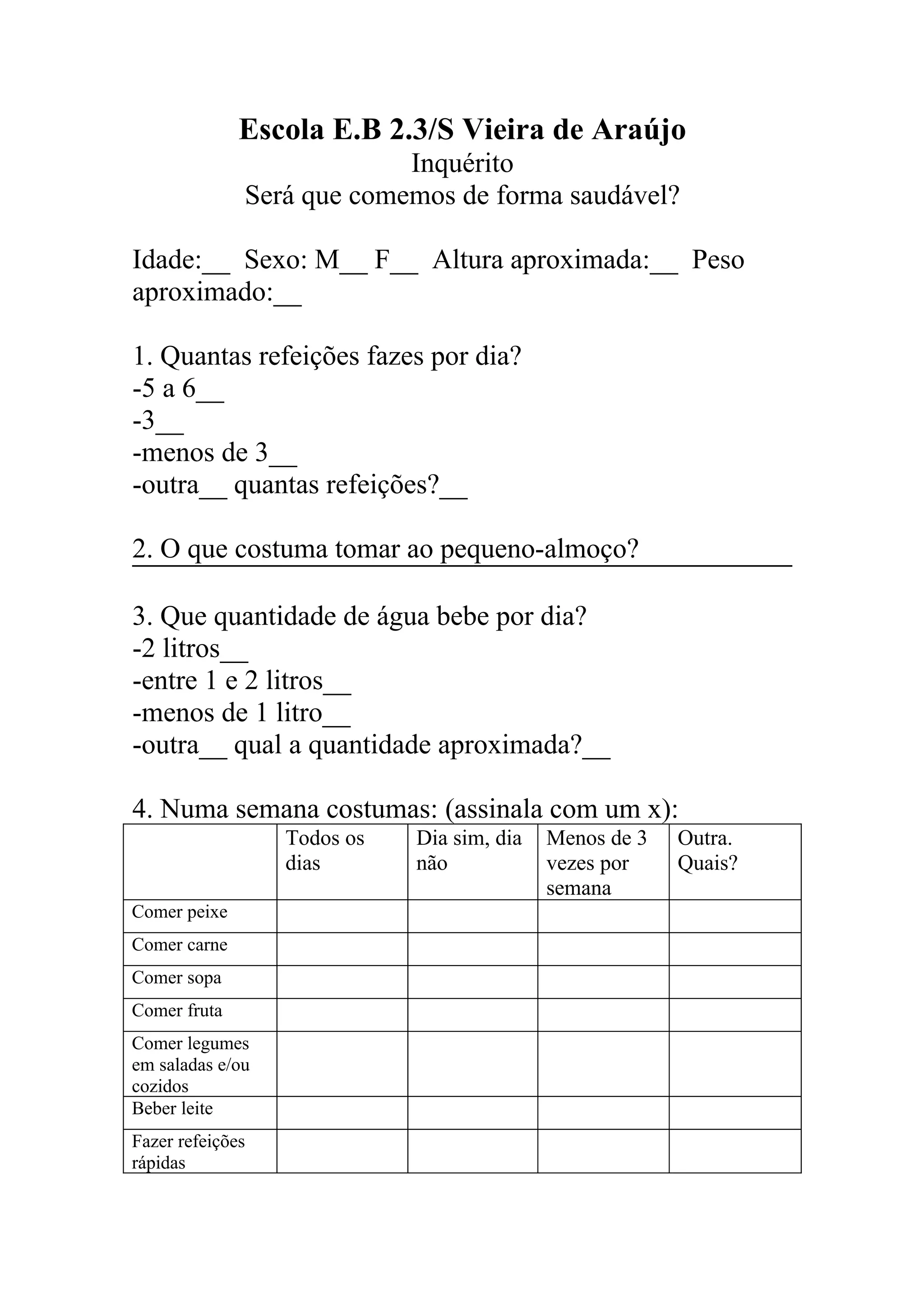 Este inquérito aplicado a estudantes avalia os seus hábitos alimentares e de estilo de vida. Em 3 frases: