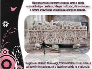 D. Pedro e Inês de Castro viveram um romance proibido no século XIV. Apesar da oposição da corte, eles se apaixonaram e tiveram filhos juntos. O rei Afonso IV, pressionado pelas intrigas, ordenou a execução de Inês. Após sua morte, D. Pedro se vingou e declarou Inês sua esposa, imortalizando seu amor.
