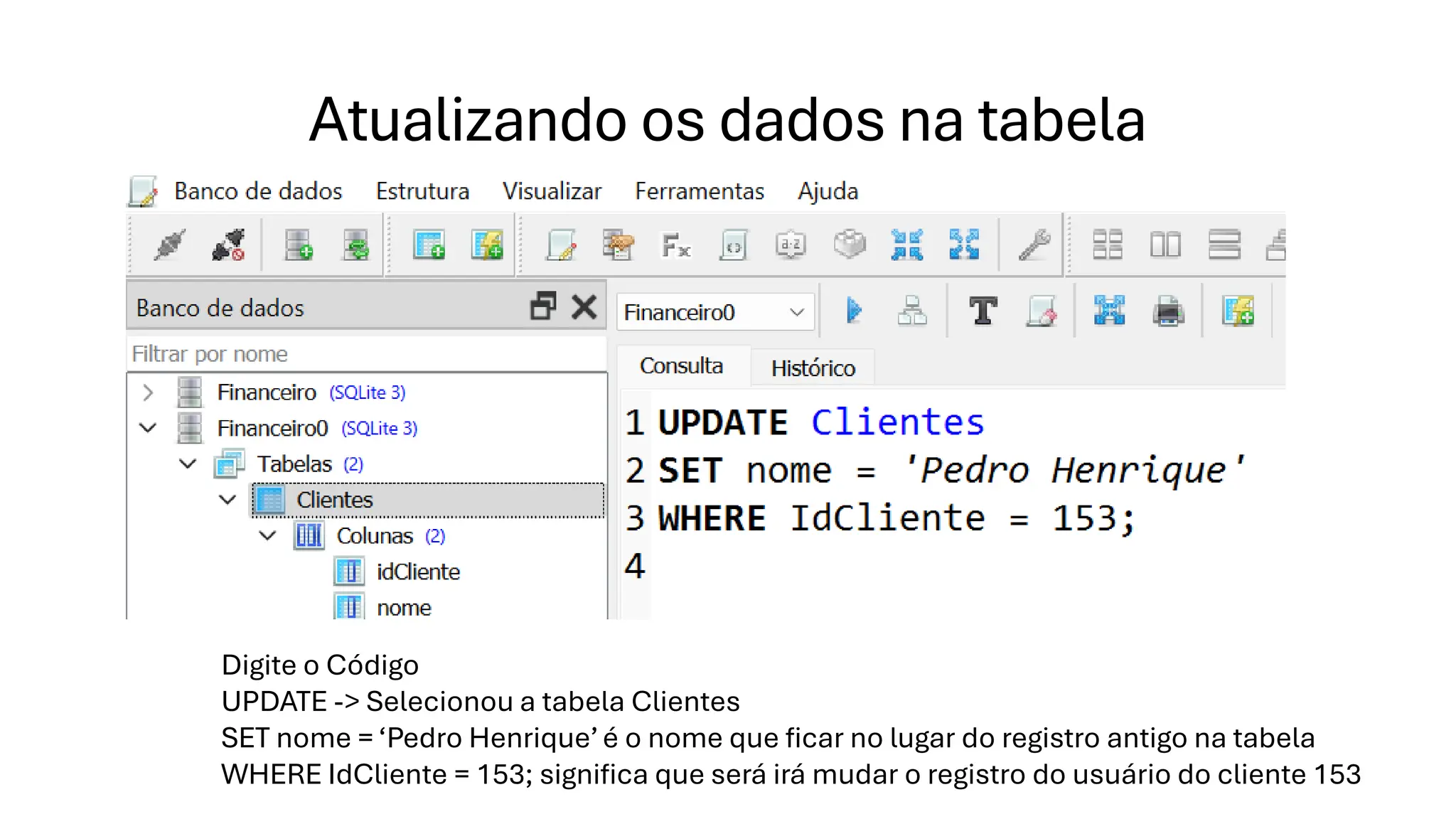 O documento descreve comandos SQL essenciais para manipulação de bancos de dados, incluindo inserção, atualização e exclusão de registros. Especificamente, apresenta os comandos 'insert', 'update' e 'delete', ilustrando como usá-los corretamente com exemplos práticos relacionados a uma tabela de clientes. Além disso, enfatiza a importância de clicar em 'atualizar dados' após alterações para visualizá-las na tabela.