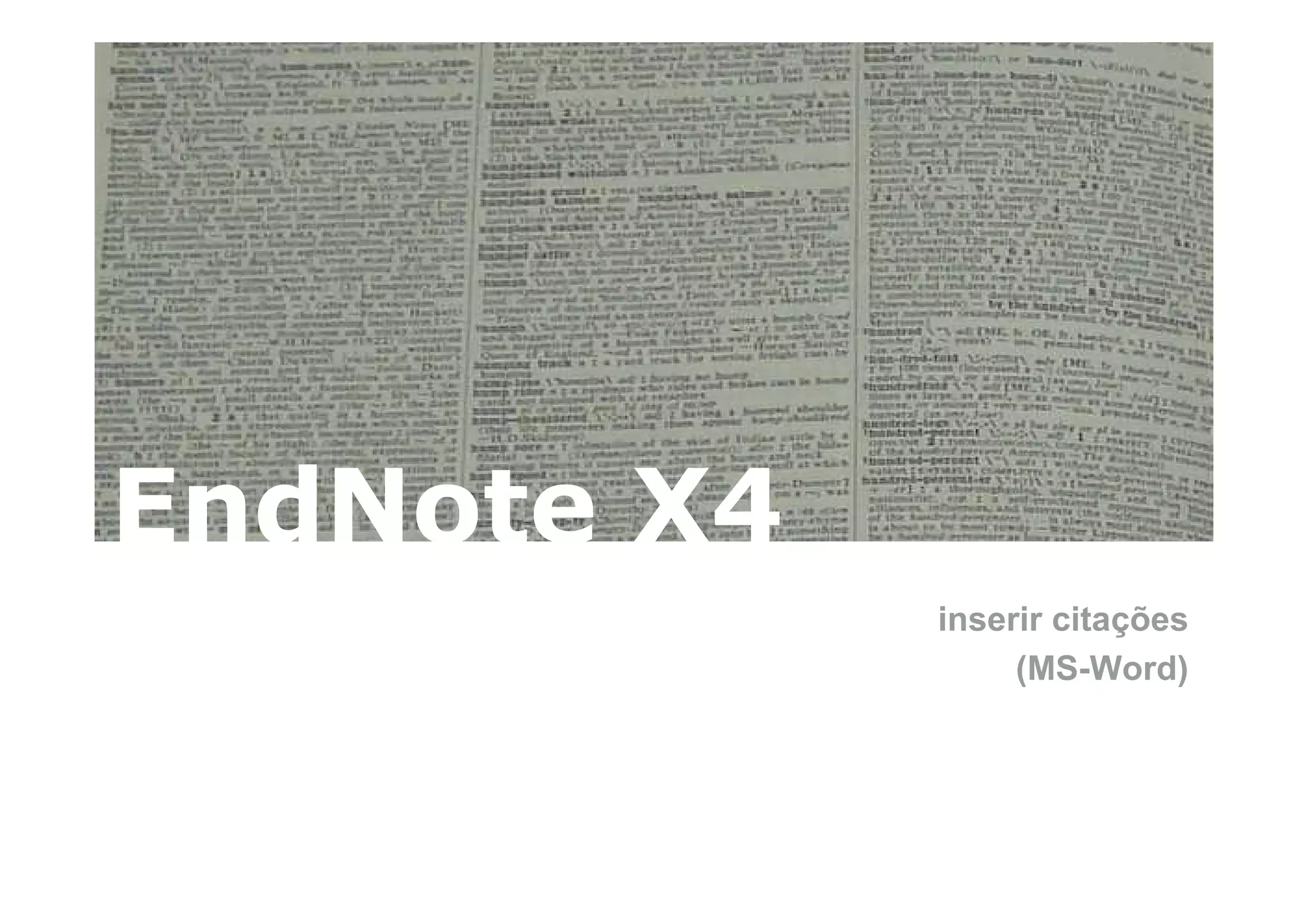 O documento fornece instruções sobre como inserir citações no Microsoft Word usando o EndNote X4. Explica como localizar e selecionar referências no EndNote, inseri-las no Word e gerar a lista de referências no estilo selecionado. Também discute como lidar com citações ambíguas e editar citações específicas.