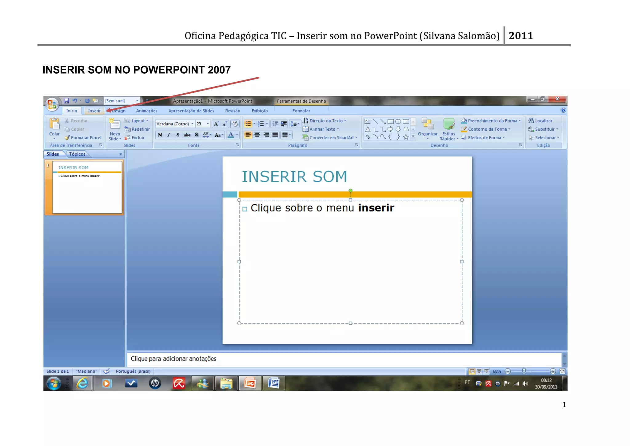 Oficina Pedagógica TIC– Inserir som no PowerPoint (Silvana Salomão) 2011