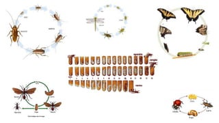 3) Os insetos apresentam diferentes estratégias reprodutivas como reprodução sexuada e assexuada, e os estágios de desenvolvimento variam entre espécies com ou sem metamorfose.