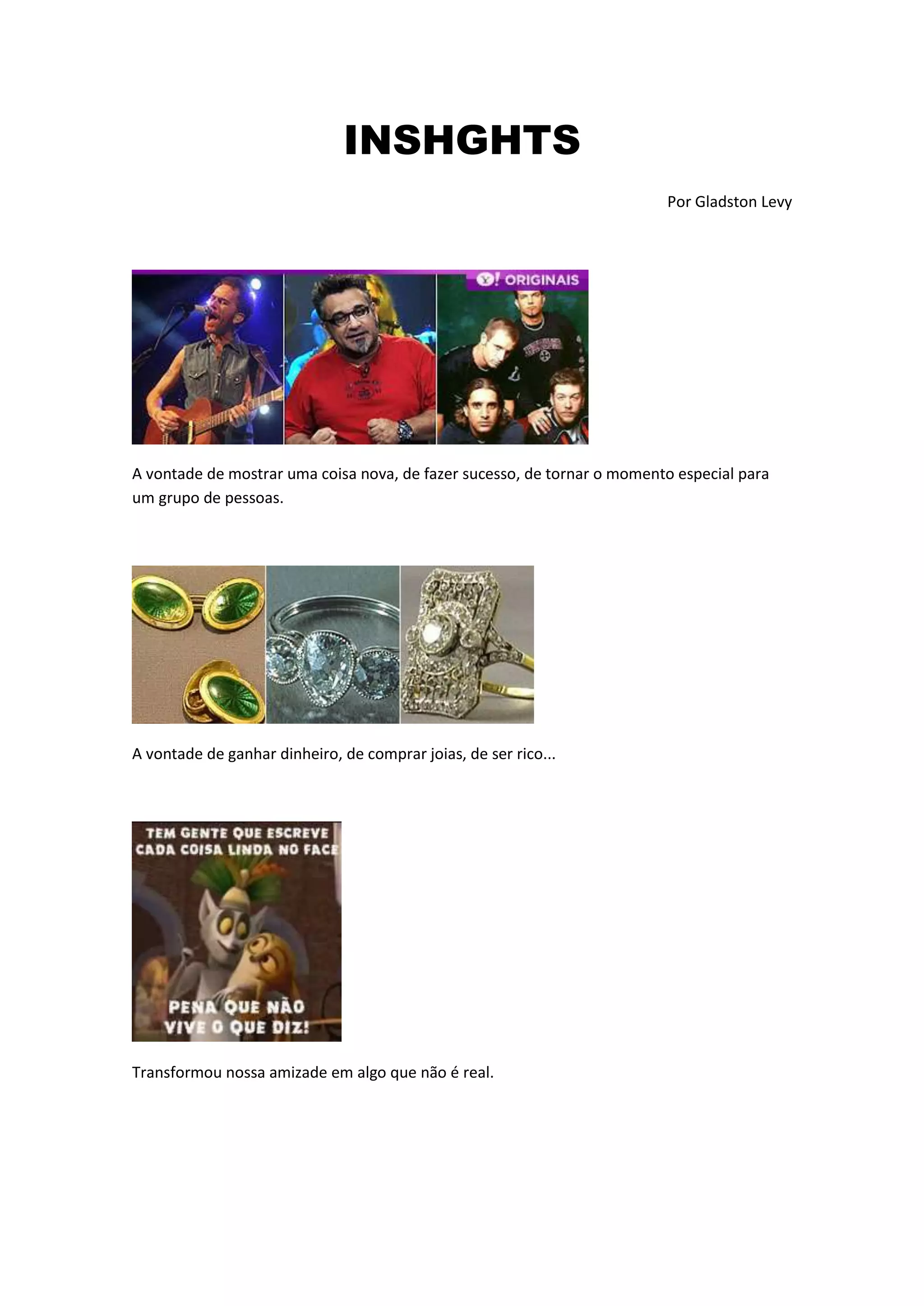 O documento descreve a desilusão de um homem com seu relacionamento passado e sua nova perspectiva positiva após a separação. Ele fala sobre como a ex-parceira abandonou seus sonhos juntos e seu filho para viver uma vida vazia e instável, enquanto ele agora constrói uma vida real e feliz com seu filho e uma nova parceira que o ama.