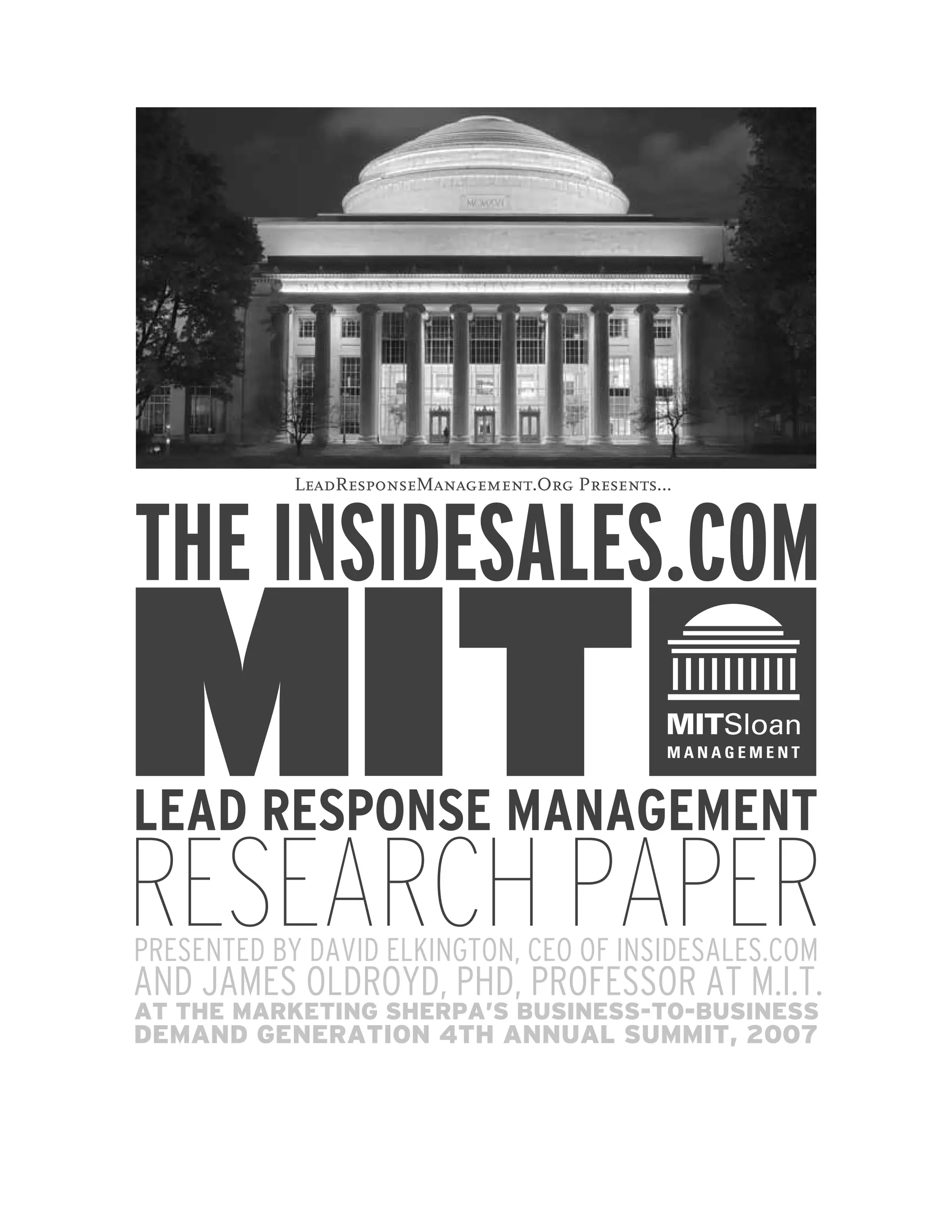 The document presents findings from a study conducted by MIT Professor James Oldroyd analyzing data from six companies on when is the best time to call sales leads. Some of the key findings include: