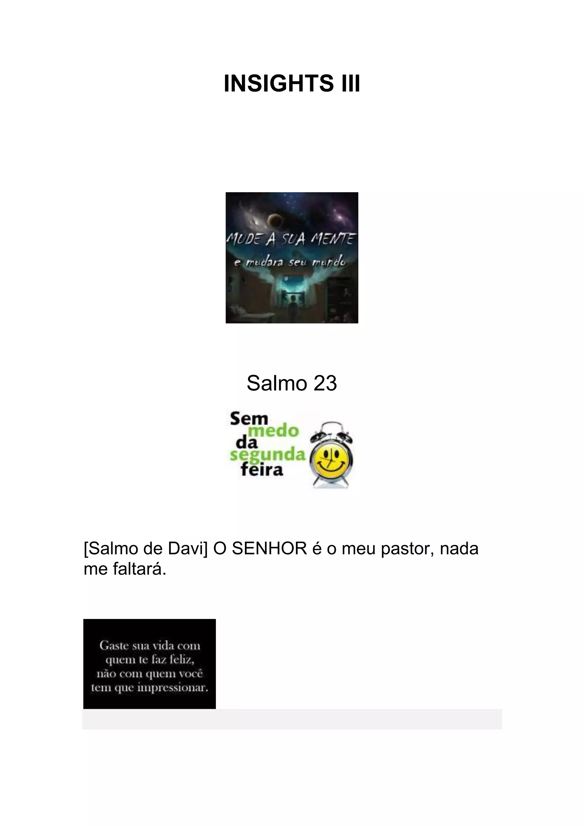Este documento contém três poemas curtos. O primeiro é sobre a confiança no Senhor como guia protector. O segundo fala sobre aprender fora da sala de aula através da vida diária. O terceiro sugere que os sonhos refletem o estado interior de uma pessoa.