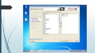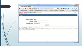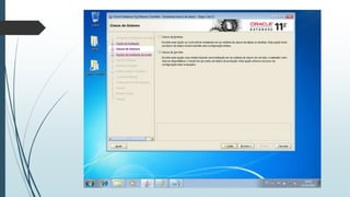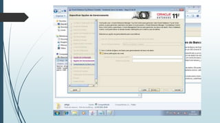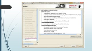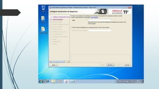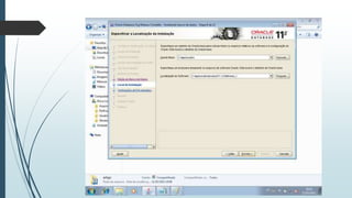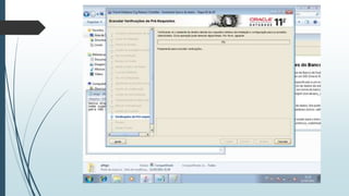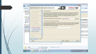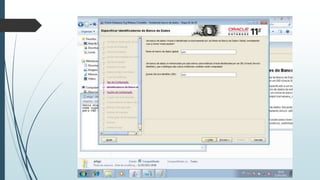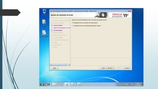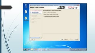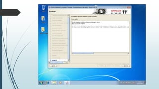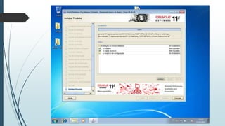 O documento fornece instruções passo-a-passo para instalar o Oracle 11g no Windows 7, cobrindo os requisitos de hardware e software, as etapas da instalação, e como configurar os serviços necessários para executar o banco de dados Oracle após a instalação.