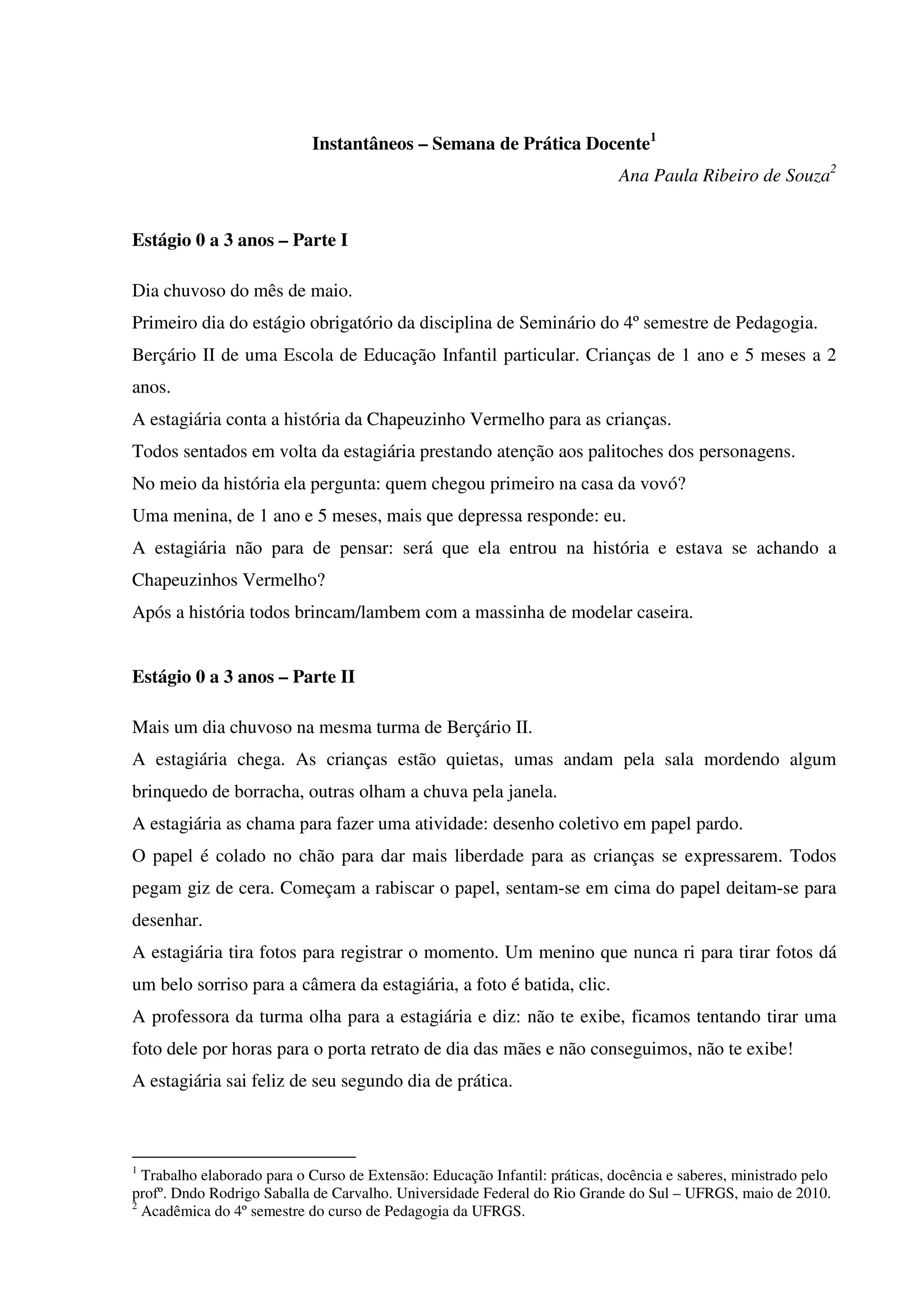 1) A estagiária conta a história da Chapeuzinho Vermelho para as crianças e uma delas responde que chegou primeiro na casa da vovó, possivelmente se identificando com a personagem.
