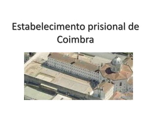O Estabelecimento Prisional de Coimbra acomoda 424 reclusos masculinos em oito alas, incluindo um setor disciplinar. A maioria foi condenada a penas de mais de 10 anos por crimes relacionados a drogas. O presídio oferece oficinas e cursos profissionais, além de atividades educacionais, culturais e esportivas.