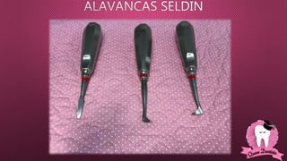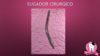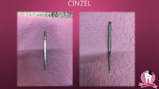 O documento descreve diferentes instrumentos cirúrgicos odontológicos e suas funções, incluindo bisturis, elevadores, pinças, brocas e tubetes anestésicos. Ele fornece detalhes sobre como cada ferramenta é usada para cortar tecidos, remover dentes, controlar sangramento e outros procedimentos.