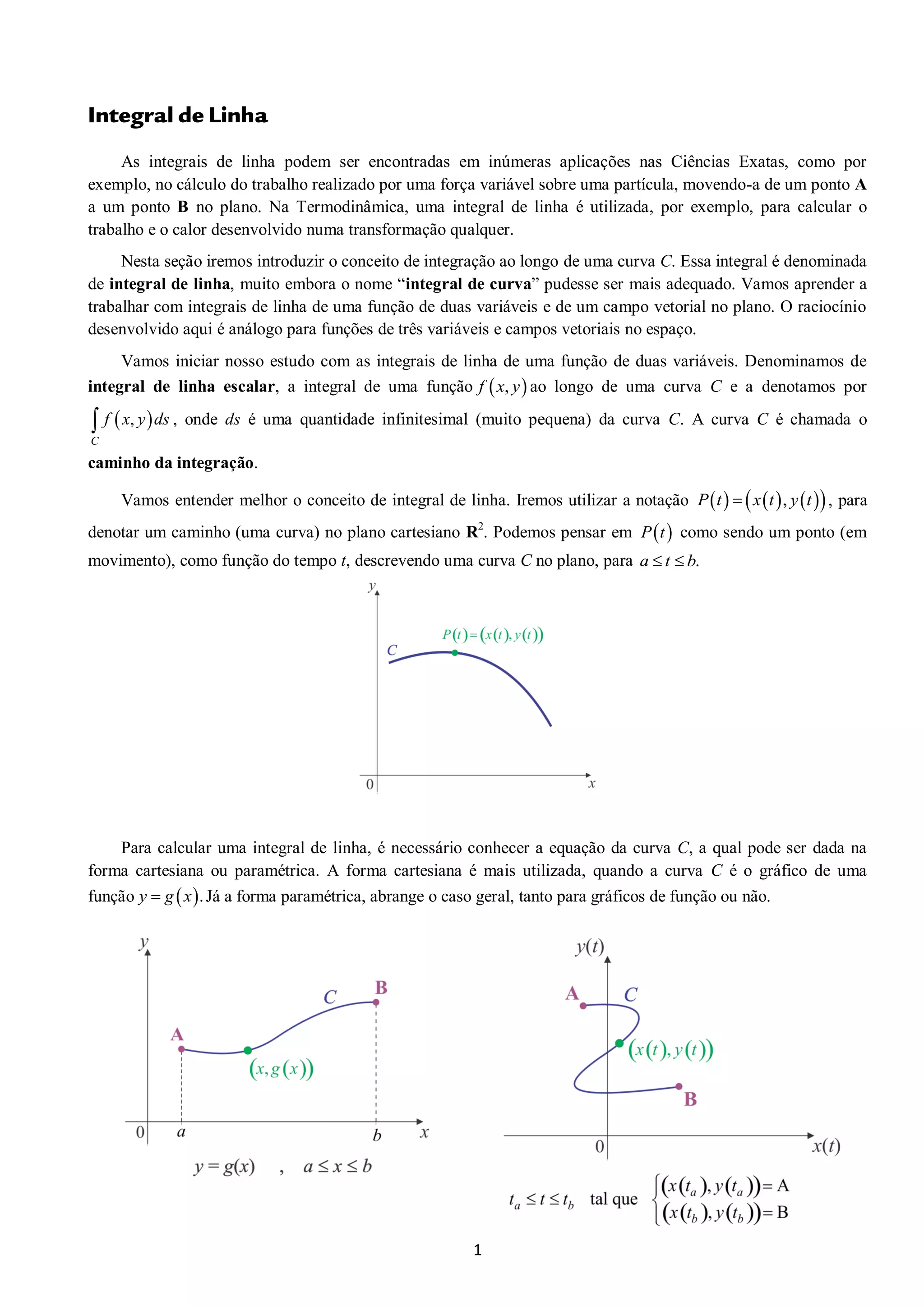 2. São introduzidos os conceitos de integrais de linha de funções de duas variáveis e campos vetoriais no plano, que podem ser transformadas em integrais simples.