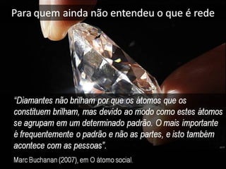 O documento aborda a importância da inteligência em rede para as empresas, enfatizando que mudanças no padrão de organização são essenciais para um funcionamento eficaz. Destaca a necessidade de ambientes físicos e virtuais que promovam interação e troca de informações, além de identificar princípios como resiliência e aprendizado contínuo. Conclui incentivando a discussão sobre experiências práticas com redes e a criação de um entendimento coletivo sobre esses princípios.