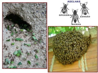 O documento discute as interações ecológicas entre organismos de uma comunidade. Ele descreve as principais relações intra e interespecíficas, como mutualismo, competição, predação e parasitismo, e fornece exemplos de cada tipo de interação.
